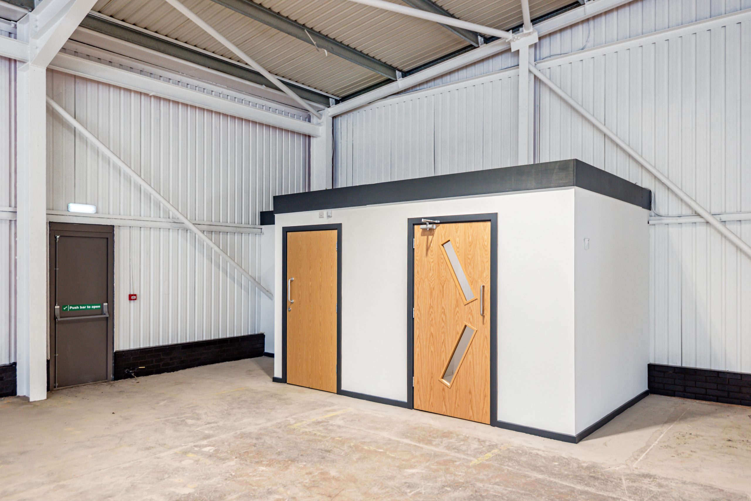 This recently refurbished 4,940 sq. ft. industrial unit has been completed to an exceptional standard, offering a modern and functional workspace. The exterior features a sleek cladded system with an integrated glazed frontage, creating a professional and contemporary look.